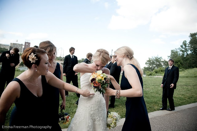 I had been looking forward to Sarah and Phil's wedding since I did their engagement photos last winter. They are such a genuine, sweet couple together. They've been together for close to 10 years already! Sarah summed it up while she was getting ready when she said "Phil and I don't keep any secrets. We tell each other everything, so when he said he didn't want to know what my dress looked like until I walked down the aisle, it was SO hard to keep it from him." In their truly playful way, Sarah teased him along the way by telling him she was going to wear a turtle necked short dress. I love it! We had so much fun taking photos with all of their wedding party. I love when a group has high energy and is up for anything. They had dueling pianos at their reception instead of a dj which turned out to be SO much fun. I even ended up standing on top of one to take dancing photos.